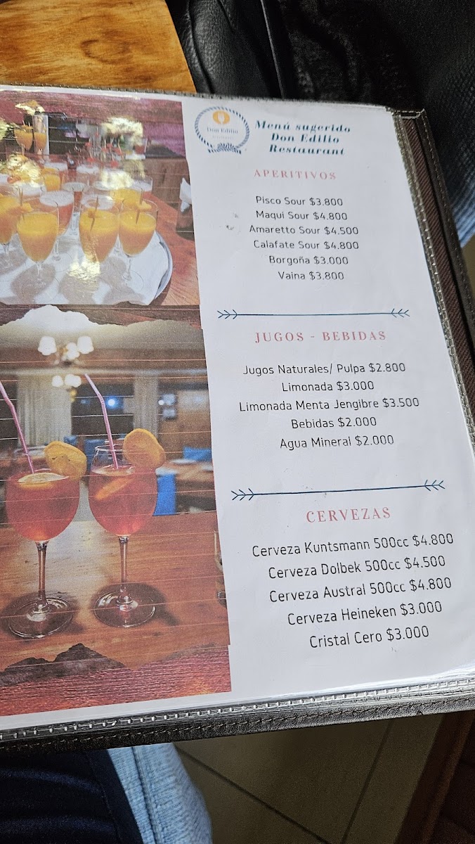 Don Edilio Restaurante in Coyhaique offers a diverse and mouth-watering menu, perfect for any occasion. The restaurant's Eventos menu provides a selection of dishes designed for special events, offering an upscale dining experience. The Platillos con Pollo section features comforting and flavorful chicken-based dishes, such as Pollo a la Plancha for $6,500 CLP or Pollo al Horno for $7,000 CLP, perfect for those craving classic, hearty meals.