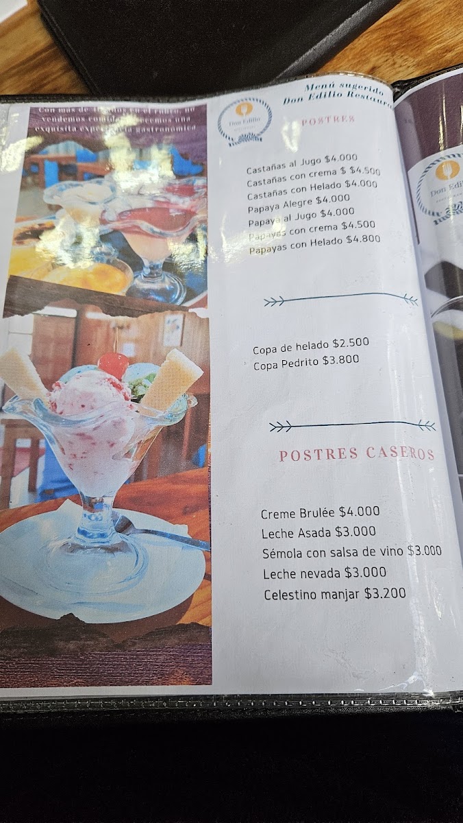 All in all, Don Edilio Restaurante combines variety with quality, ensuring there's something for everyone on the menu, whether you're after a quick lunch or a grand celebration. The reasonable prices and diverse offerings make it an excellent choice for both locals and visitors looking to indulge in Chilean cuisine.